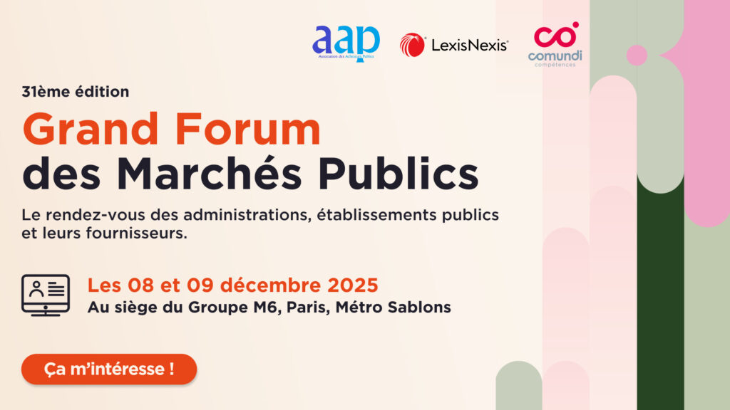 Le Grand Forum des Marchés Publics revient pour sa 31e édition les 8 et 9 décembre 2025 (en présentiel ou distanciel) pour deux jours intenses de conférences, tables rondes et retours d’expérience.